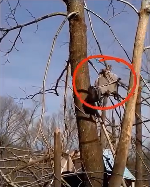 The storm had lifted Lord across the yard and gently deposited him in the branches of a tree, sparing him from catastrophic injury.